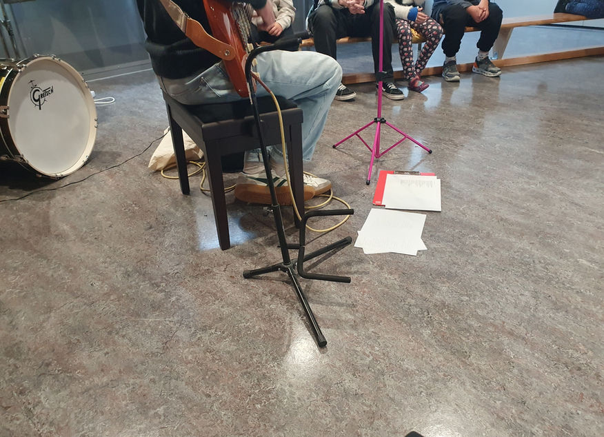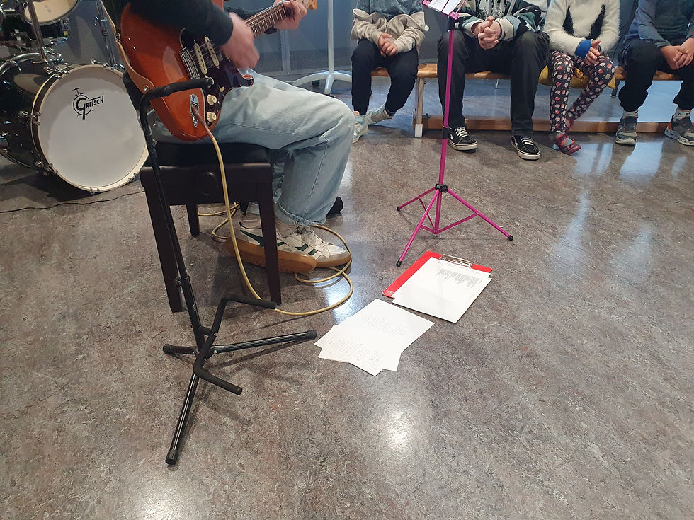 In unserer musikalischen Pause wird der Musikraum zum Treffpunkt für alle, die gerne singen, musizieren oder einfach zuhören möchten. Schülerinnen und Schüler haben hier die Gelegenheit, gemeinsam bekannte Lieder und Wunschlieder zu singen – begleitet von Gitarre, manchmal auch mit Schlagzeug oder anderen Instrumenten.